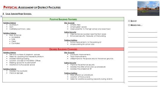 Physical Assessment of District Facilities