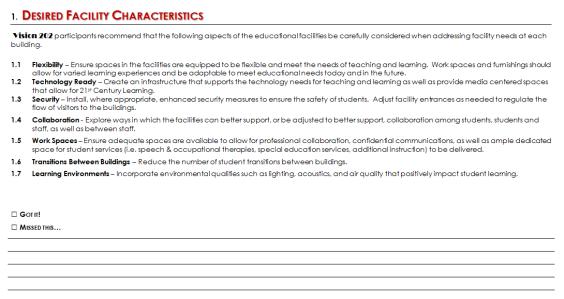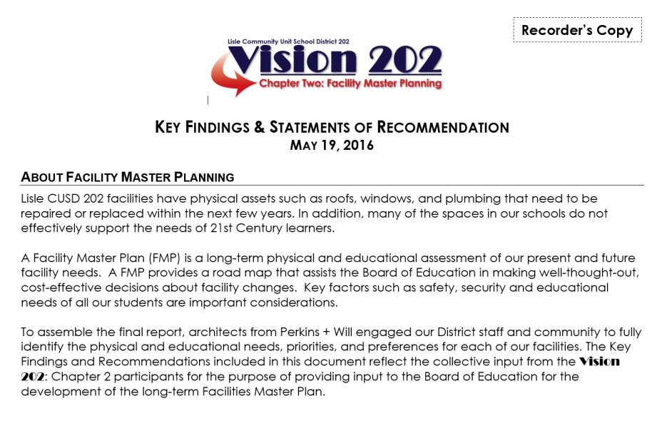 Vision 202 participants identified educational aspects related to the Lisle 202 facilities to be considered in the Facilities Master Plan based on: