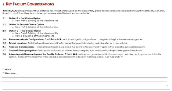 Vision 202 participants identified overall preferences to be considered in the development of the Facilities Master Plan