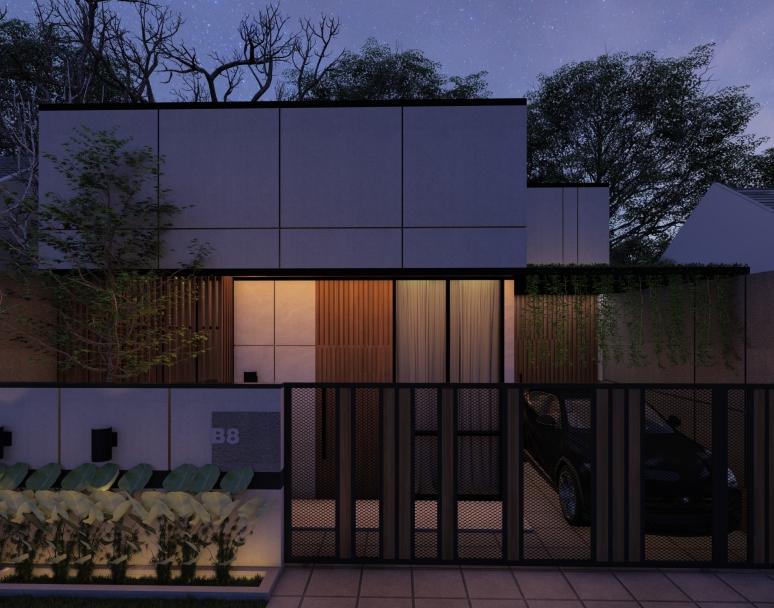Kontemporer dengan luas 9x12. memanfaatkan lahan kecil untuk hunian yang multifungsi