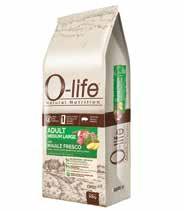 O-life è una gamma completa di alimenti per cani di tutte le razze. Le ricette hanno come primo ingrediente carne o pesce sempre freschi, senza l’aggiunta di cereali o con un basso contenuto. Senza coloranti e conservanti artificiali.