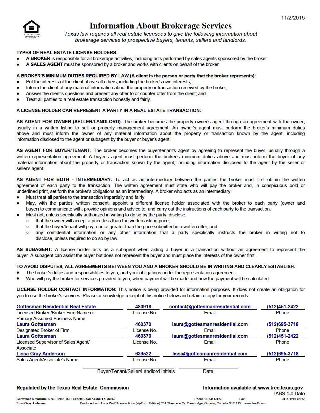 Texas law requires all real estate licensees to provide potential clients with an explanation of brokerage services in the state of texas. a copy of the information is provided here.