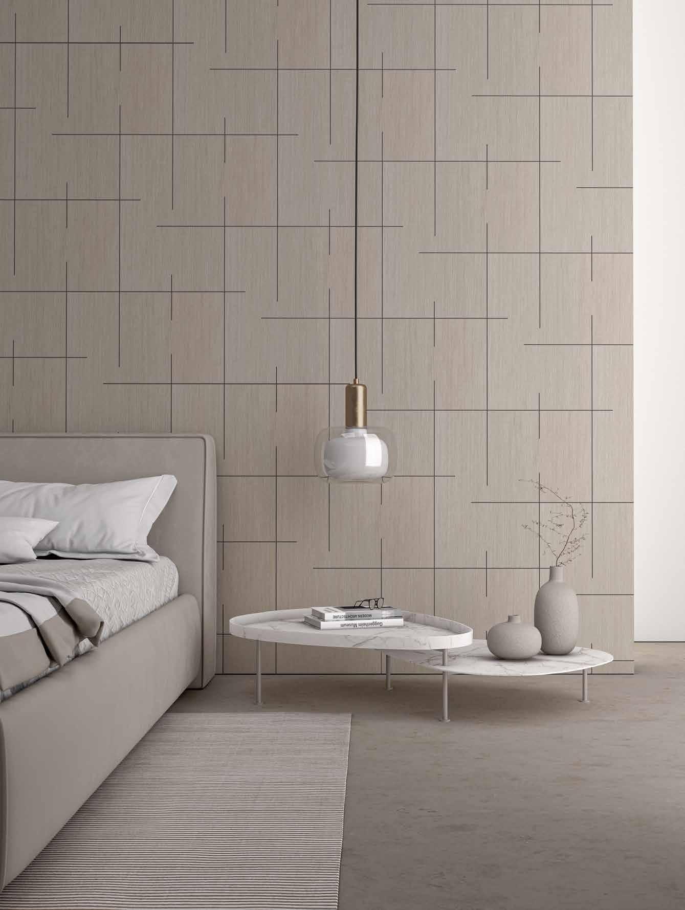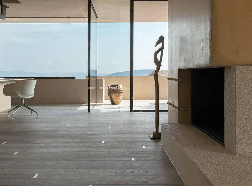 Il particolare trattamento superficiale, con la tradizionale lavorazione a piano sega, regala seducenti effetti di luce e inaspettate sensazioni ancestrali.