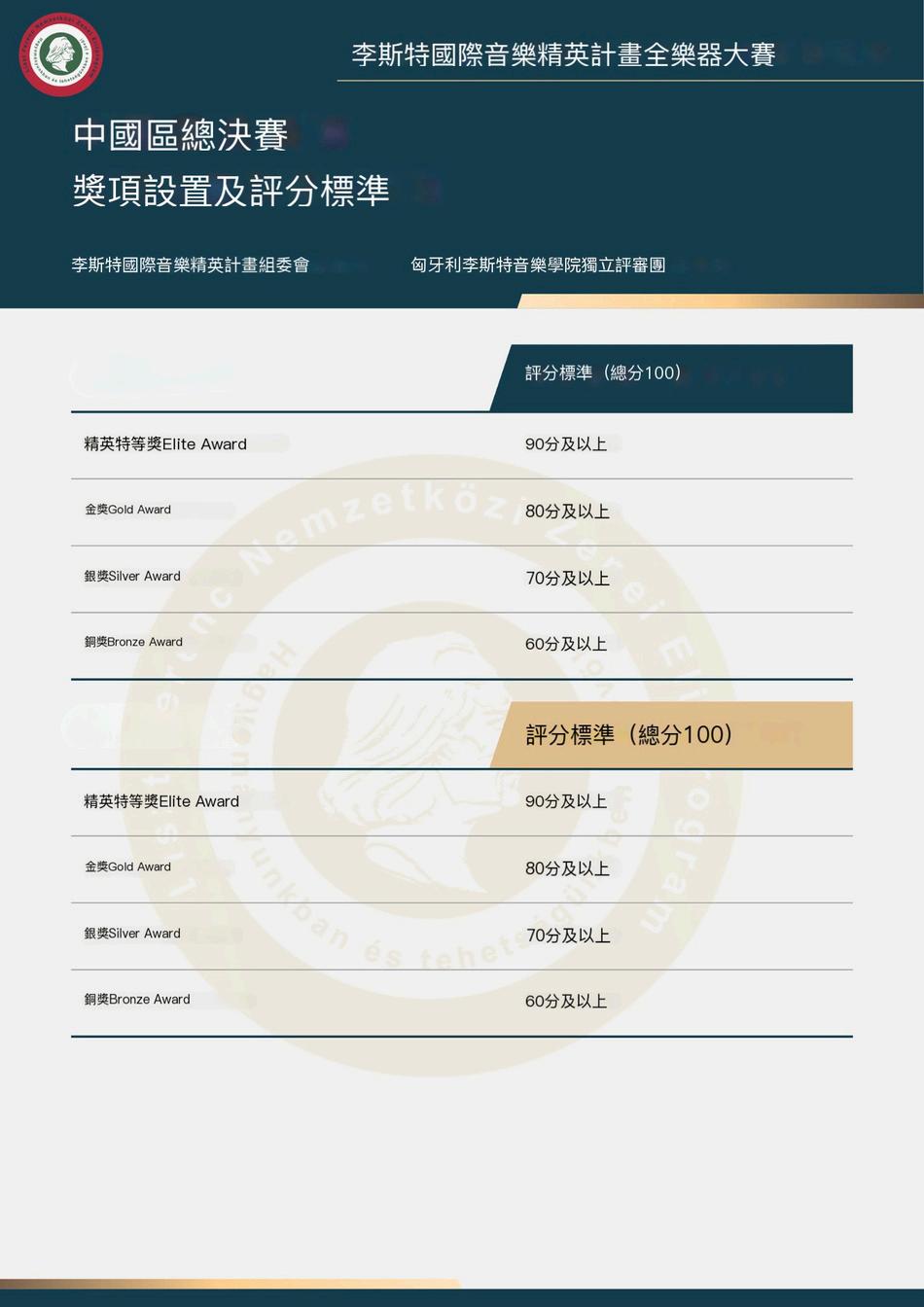 李斯特⾳樂學院將向專業組的精英及 ⾦獎得主發出歐洲總決賽的邀請函。