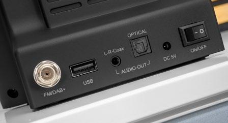 Für einen angesichts der kompakten Abmessungen hervorragenden Sound sorgen ein kräftiger 30 Watt-Verstärker, zwei in der Front montierte 50 mm-Mittelhochtöner, ein nach unten abstrahlender 100 mm-Subwoofer und ein die Basswiedergabe unterstützender passiver Radiator auf der Rückseite. Den störungsfreien Empfang von UKW- und DAB+ Radioprogrammen gewährleistet die zum Lieferumfang gehörende Stabantenne, die sich im stationären Betrieb abnehmen und durch eine per Kabel angeschlossene externe Antenne ersetzen lässt.