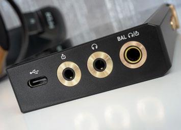 Kopfhörer können symmetrisch oder unsymmetrisch angeschlossen werden. Dazu gibt es Line-Outs für die Integration in die Anlage, sowie USB zum Laden und für die Musikübertragung.