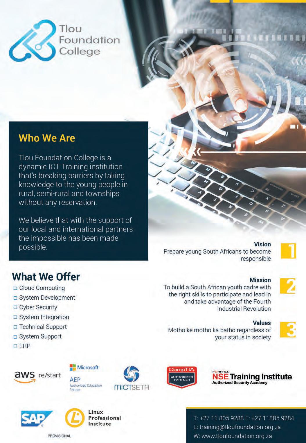 This disclaimer informs readers that the views expressed in the following featured content on page 25-26 belongs solely to the represented company/organisation and do not necessarily reflect the views of the MICT SETA. The MICT SETA accepts no responsibility for any errors in the advert.