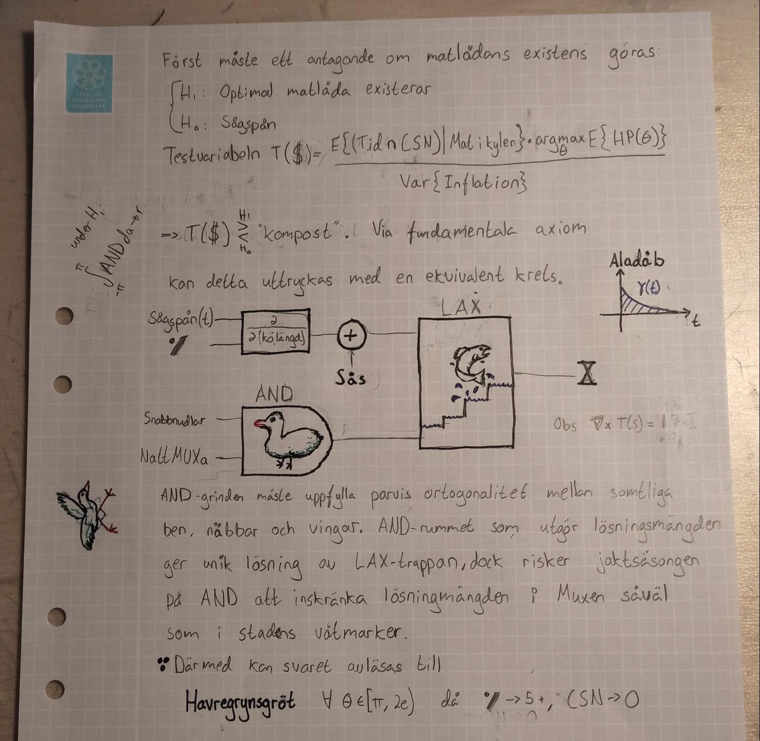 Genom åren har redaktionen sett många matlådor komma och gå, inte minst för att försöka mätta redaktionens omättliga aptit. Frågan om den optimala matlådan har flera framstående tänkare försökt besvara: Aristoteles, Peter Münger samt Darth Vader för att nämna några. NATTREDAX har efter utstuderad hantering av de lokala kändisarna “FOI-matlådorna” funnit ett detalj som samtliga sett förbi. Bidraget som NATTREDAX gör är delvis en ny ANDsats baserad bevis i TSEA51, samt att införa ett euklidiskt ANDrum som spänns upp av en ON-bas.