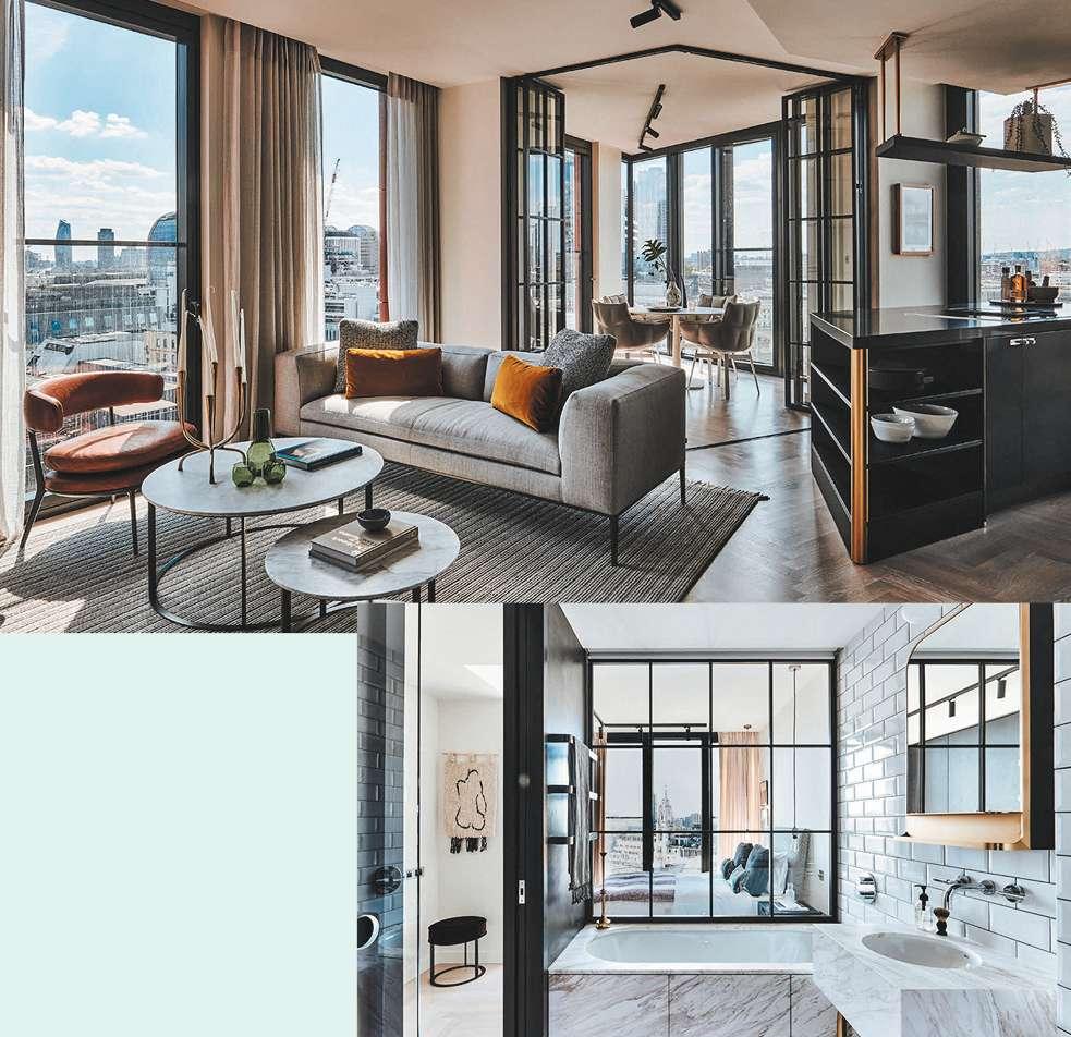 clever zoning, with contemporary yet industrial design. Design highlights include the refined pairing of natural marble and warm hues of contrasting brass accents in the bathrooms alongside the brickwork porcelain tiling which echoes the industrial fabric of the buildings of the City and East London. A unique partnership with leading Italian brands B&B Italia and Arclinea ensures all residences benefit from bespoke kitchens and wardrobes, providing a custom product with unrivalled levels of detail and quality.