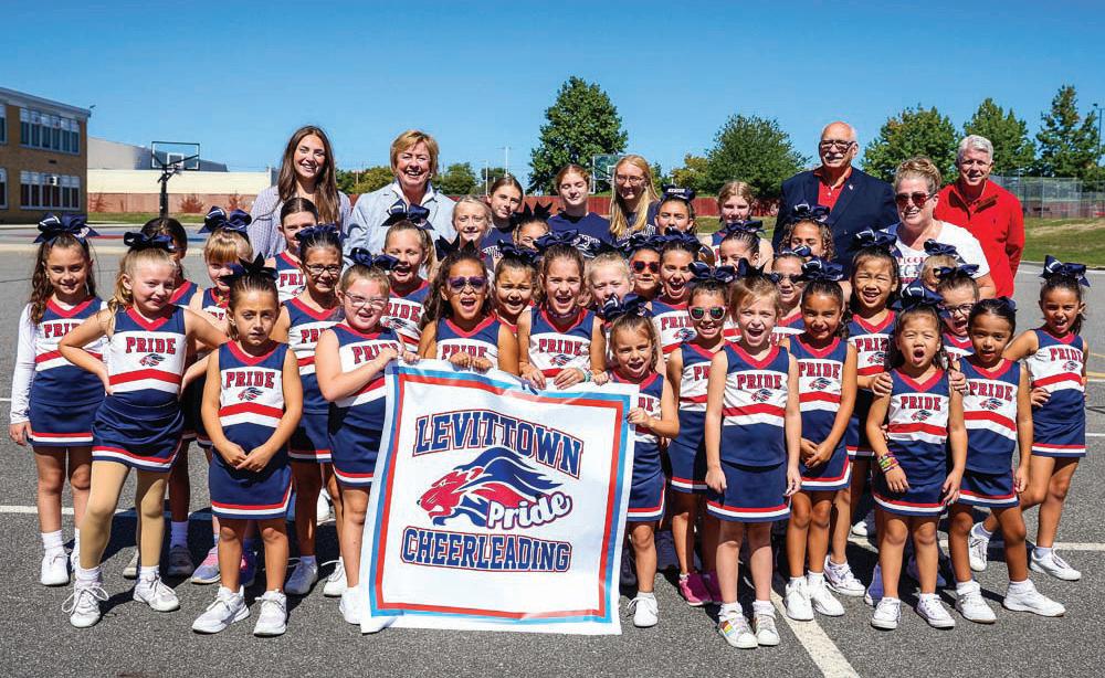 Hempstead Town Councilman Dennis Dunne and Town Clerk Kate Murray greeted members of the Levittown Pride Cheerleading Team during the Island Trees High School Homecoming Parade on September 20.