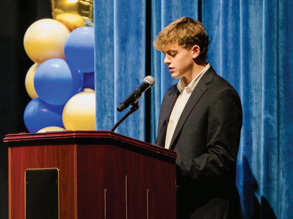 Principal Nick Jantz and NHS chapter advisor Susan Sciglibaglio addressed the audience, offering congratulations and reflections on the significance of the honor. Chapter president Anthony Cataldi also spoke, joined by fellow NHS officers who each highlighted one of the four pillars while participating in a traditional candle-lighting ceremony to symbolize the values that guide the organization.
