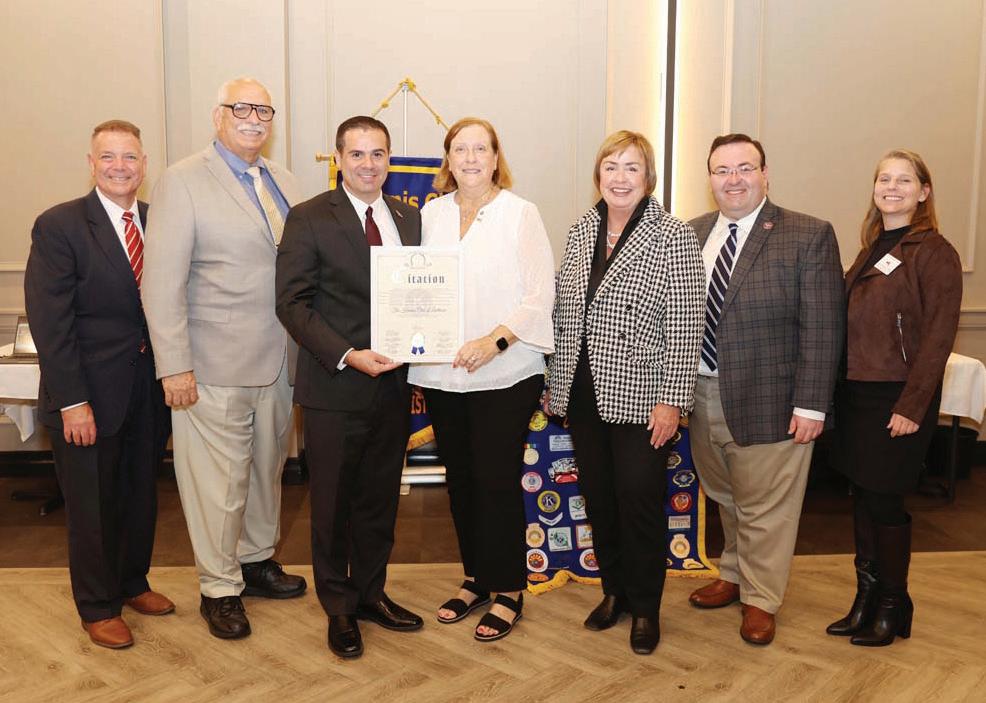 Hempstead Town Supervisor John Ferretti (third left), Councilman Dennis Dunne (second left), and Town Clerk Kate Murray (third right) attended the Levittown Kiwanis Installation Dinner on October 23, at Patrizia’s of Long Island in Hicksville. Also attending were Linda Crozier, Farmingdale Kiwanis President Robin Asighieri, Steve Dalton, and New York State Senator Steve Rhoads.