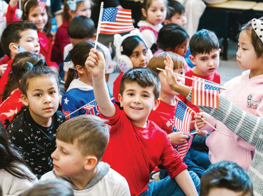 The student body gathered in the multipurpose room dressed in red, white and blue, carrying an array of pom-poms, American flags and signs wishing Charlie luck. The event kicked off with the Pledge of Allegiance and the national anthem, performed by four Kramer Lane students who represented the school at the NYSSMA All-County performance a few weeks ago.