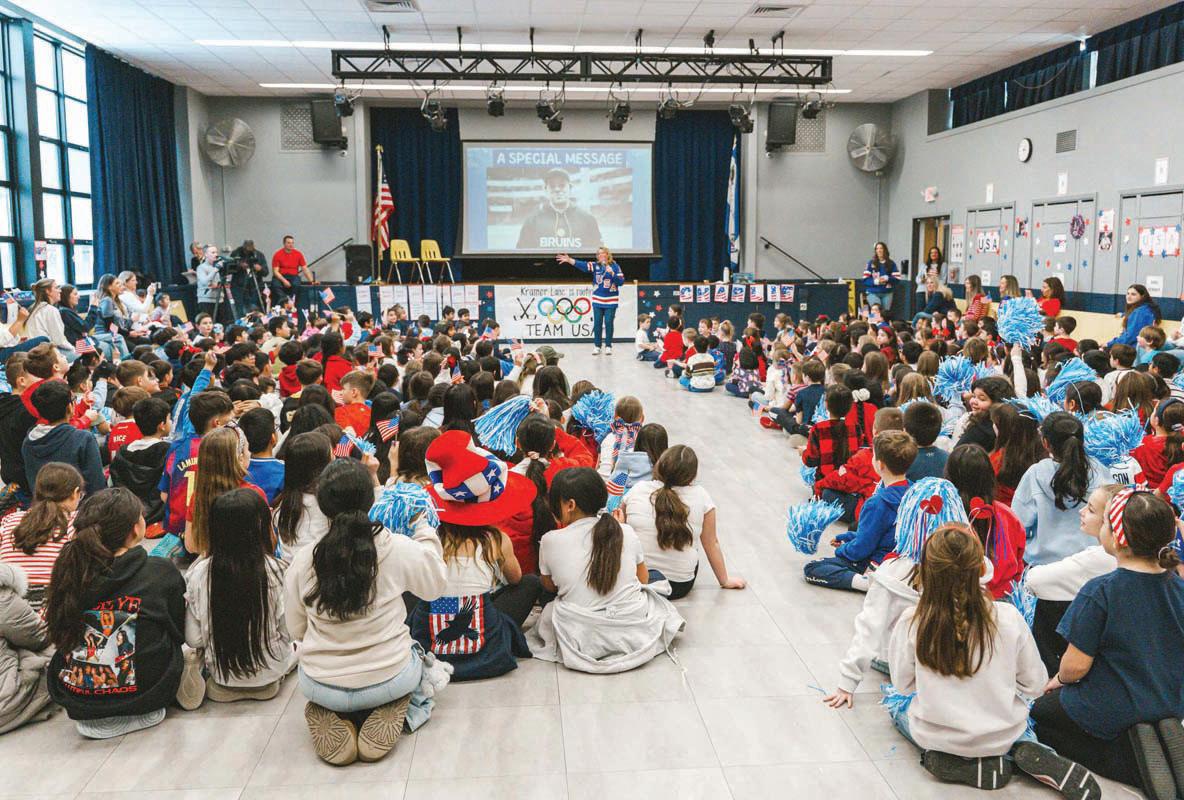 Milan wasn ’ t the only place alive with Olympic spirit on Feb. 6– Kramer Lane Elementary School hosted a spirited pep rally to celebrate second grade teacher Jennifer McAvoy ’ s son, Charlie, who is representing the United States on the men ’ s hockey team and is the only U.S. athlete from Long Island competing in the Winter Olympics.