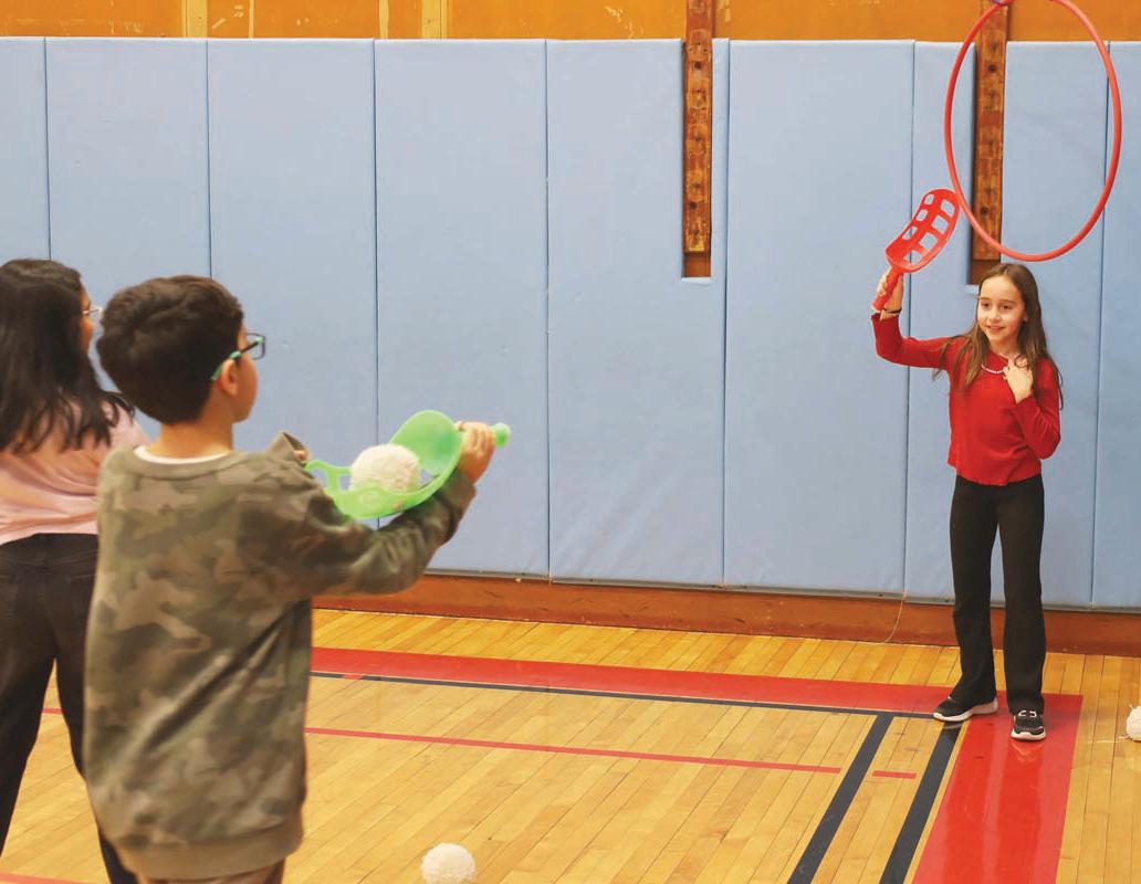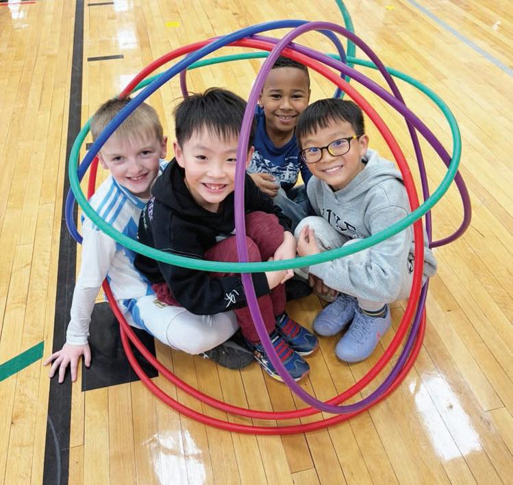 Kindergarten through fifth grade classes are participating in the unit “Castle Construction and Demolition,” an engaging group activity that has students utilizing hula hoops to create standing structures. Using teamwork, creativity and strategic planning, groups design and construct their own castles. They then put their cre-