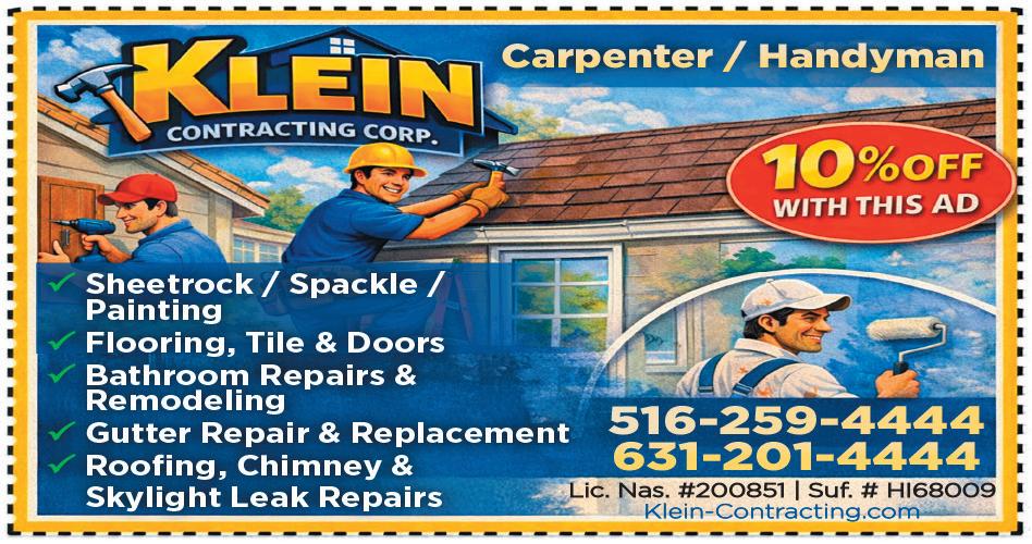 Advertise your services in our Service Directory for a boost in customers! Call 516-294-8900 for rates and info.