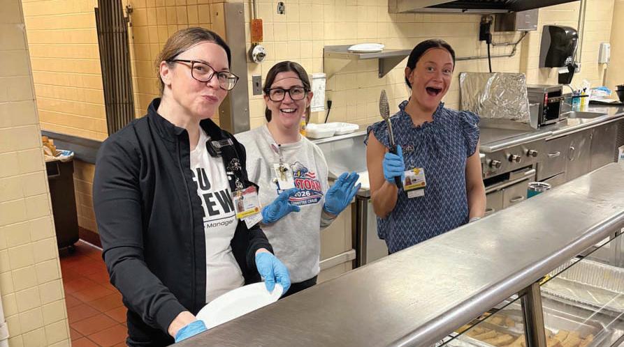 Members of the nursing staff traded in their stethoscopes for tongs and switched roles to help keep the staff fueled up for their long shifts.Photo courtesy Catholic Health’s St. Joseph Hospital