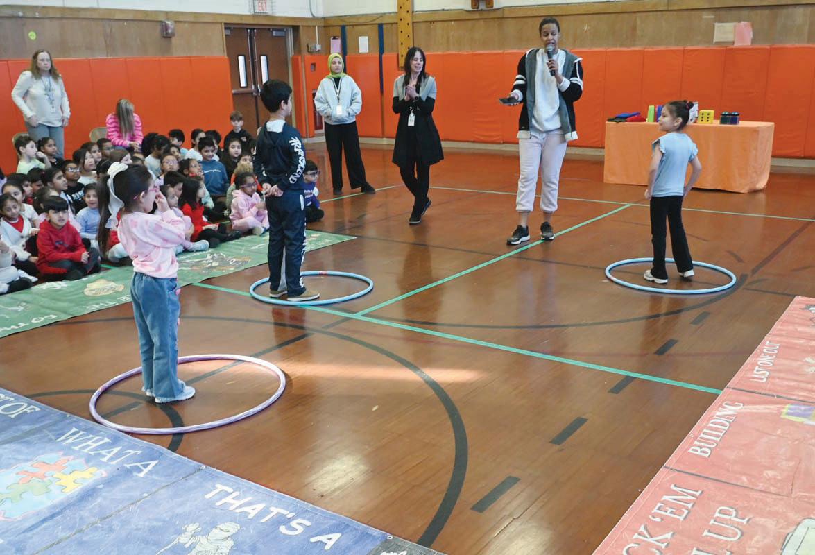 Lee Avenue Elementary students had fun participating in a special school assembly featuring the Ultimate Human Board Game. Photos courtesy of Hicksville Public Schools