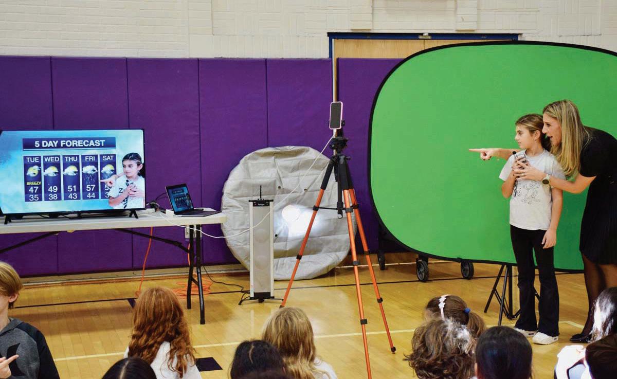 “Sam’s Weather School” concluded with the students having an opportunity to simulate the work of meteorologists, stepping in front of a green screen to provide their own weather forecast.