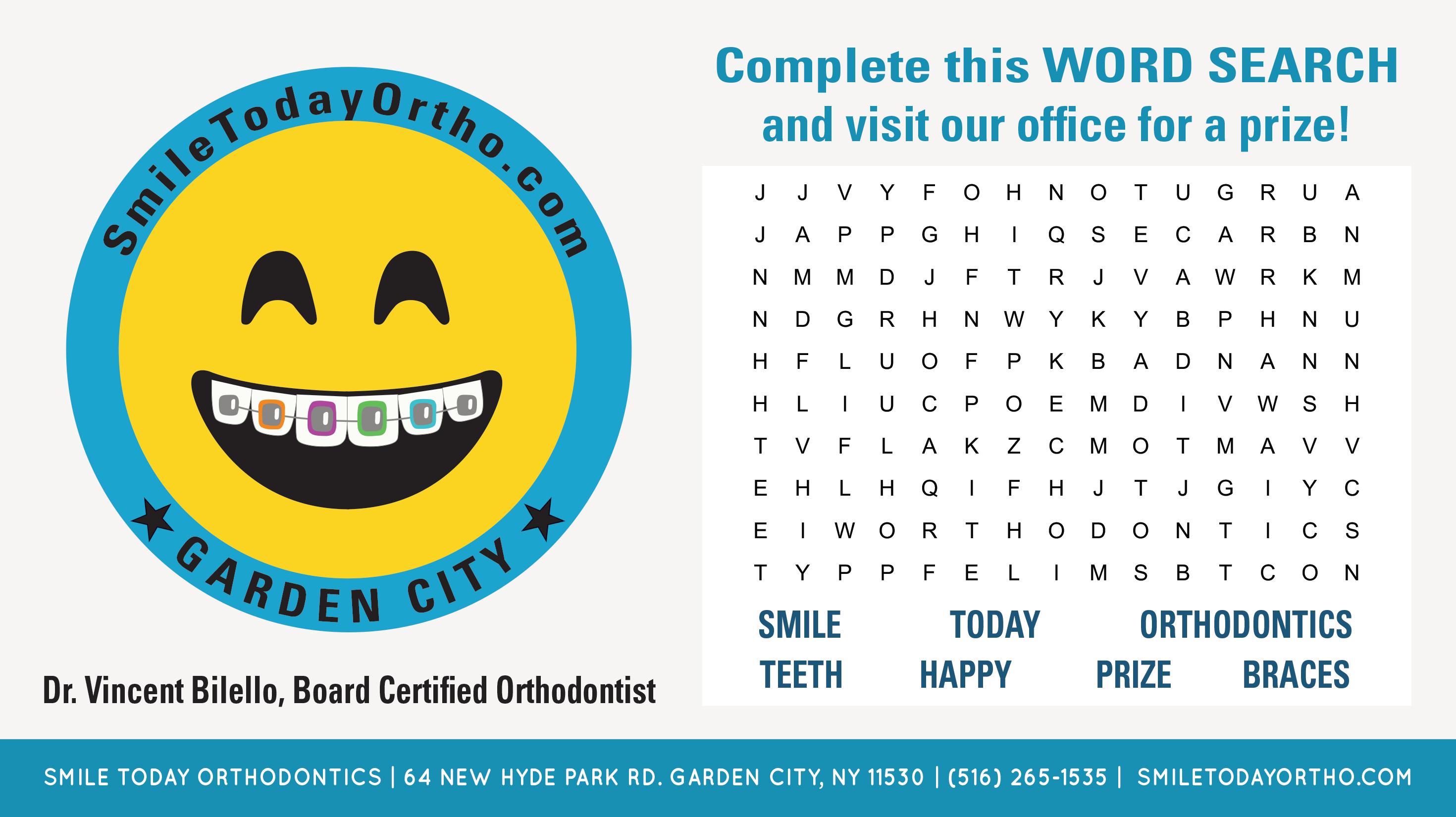 SMILE TODAY ORTHODONTICS | 64 NEW HYDE PARK RD. GARDEN CITY, NY 11530 | (516) 265-1535 | SMILETODAYORTHO.COM Complete this WORD SEARCH and visit our office for a prize! Dr. Vincent Bilello, Board Certified Orthodontist SMILE TODAY ORTHODONTICS TEETH HAPPY PRIZE BRACES Get the news ever yone’s reading about! Stay informed about your community with a weekly subscription to our newspapers. With current events, announcements, restaurant reviews, puzzles, and much more, there’s always something for everybody to enjoy! (516) 294-8900 Litmor Publishing Your Community, Your Newspaper The Garden City News • Bethpage Newsgram Jericho-Syosset News Journal • Syosset Advance The Mid-Island Times & Levittown Times