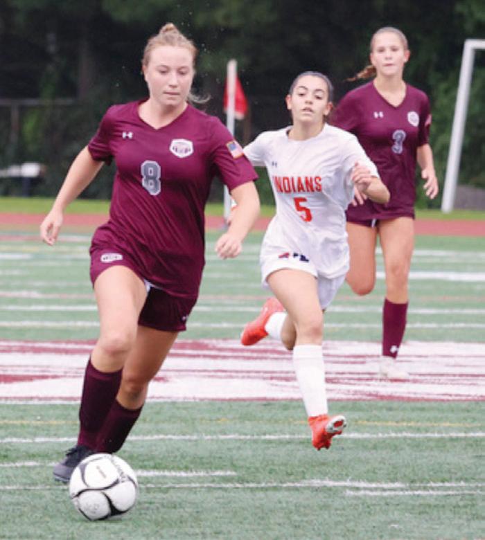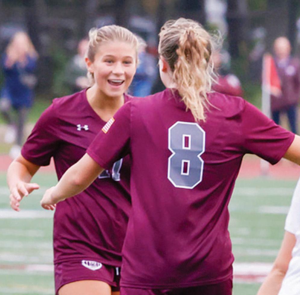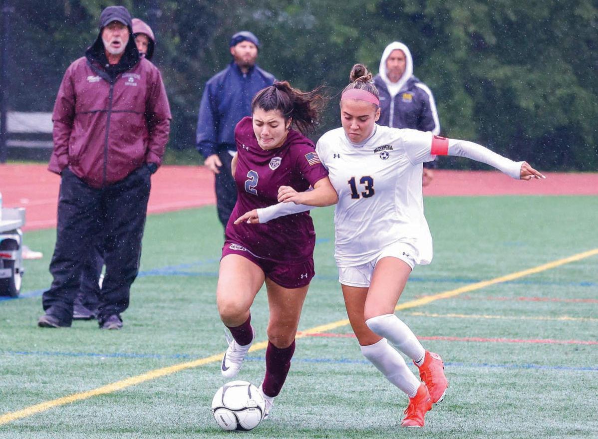 and defender Lauren Marino exhibited their superior block and tackle skills and their clears created scoring opportunities for the GC forwards and mid-fielders. GC kept pressuring the Cold Spring Harbor defense and both Anastasia Follender and Kitty Clavin scored giving GC a 4-0 advantage at halftime.