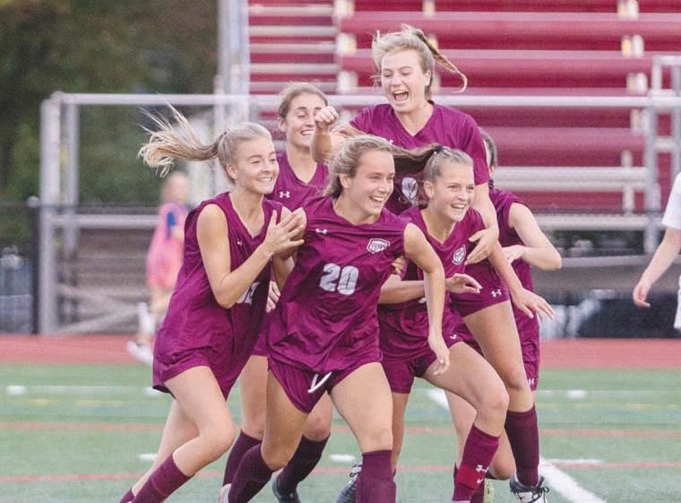 Lady Spartans. However, with a tim eout ten minutes before the end of the game with it all tied up, Coach Courtney O’Brien sent the girls out with a strategic game plan and suc ceeded. With two instant goals and with the needed help of midfielder Rosalie Haffner, the ball never left Sacred Heart’s offensive side. The amazing defense of captain Maggie McGovern held the SHA defense