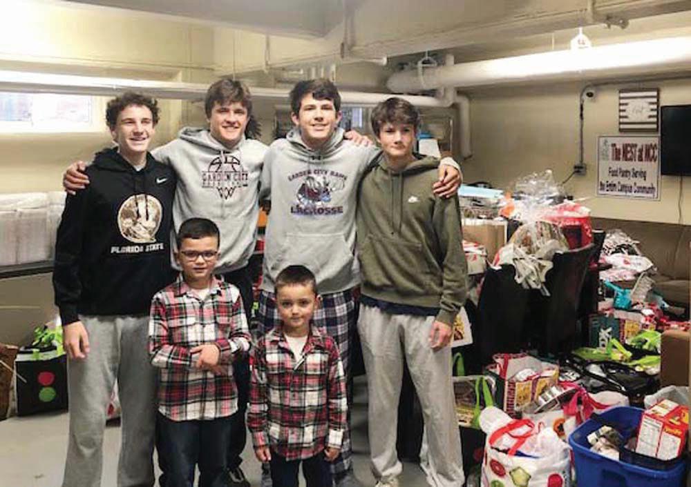 In honor of Veterans Day, the Rams 2030 Maroon Lacrosse team worked together to collect donations from fam ily and neighbors to help stock a local pantry servicing Nassau County veter ans. Wearing red, white and blue, the players gathered at St. Pauls to pack the items up into multiple car loads. Jimmy Kenny spoke with the team about the importance of honoring our heroes through community-based efforts and always expressing gratitude for their service to our country. With 100% participation from the