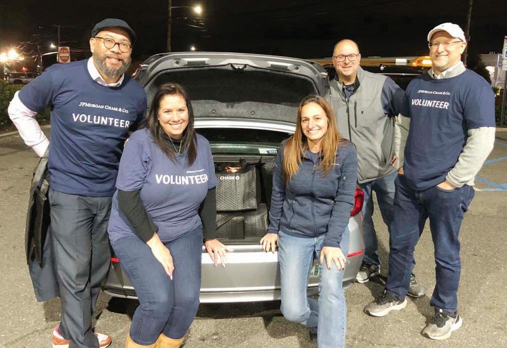 Volunteers from JP Morgan Chase helped support Jericho Cares. Volunteers with some of the donated food.