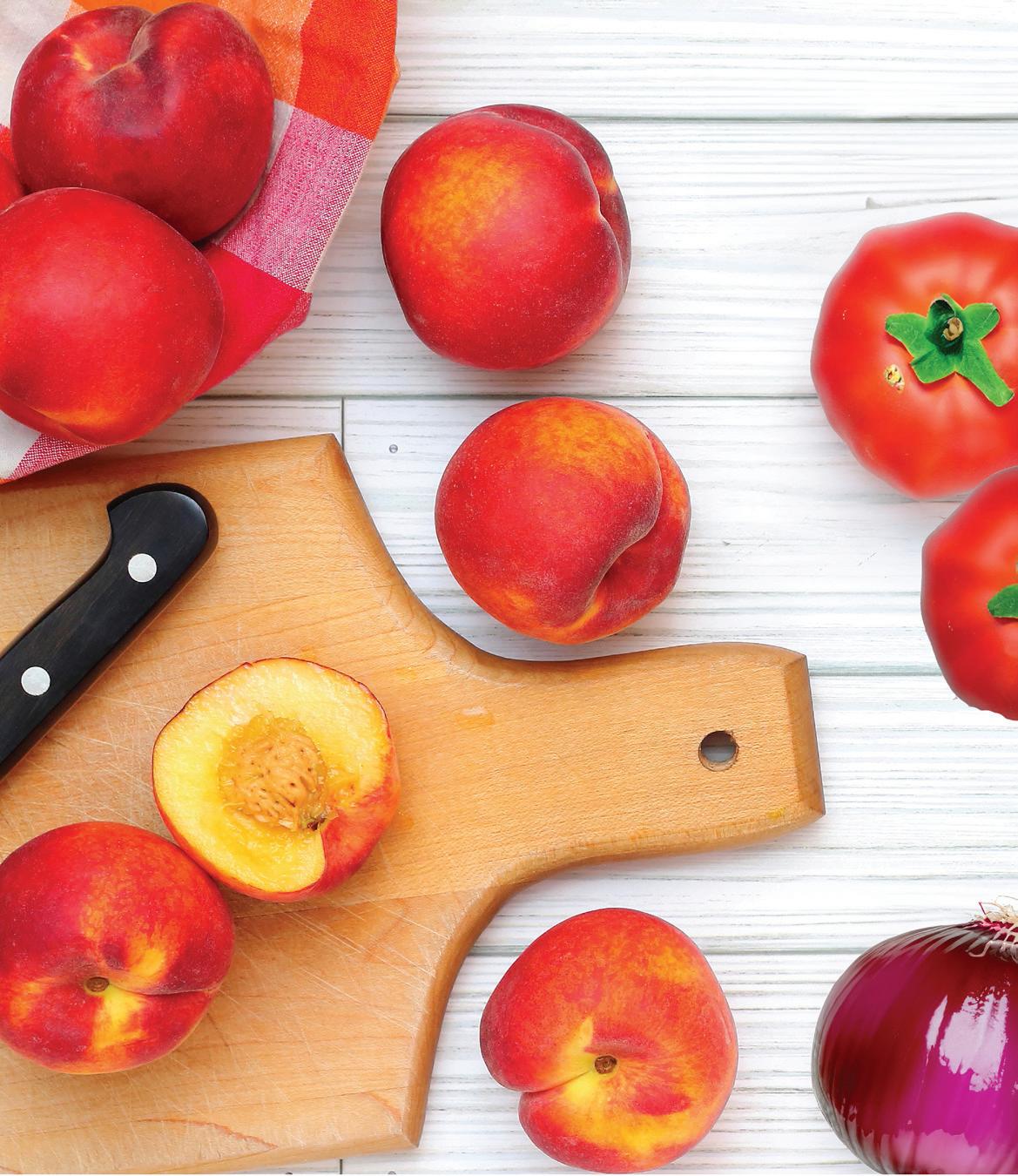 1) Toss the peaches, tomatoes and red onion in a large bowl. Season to taste.