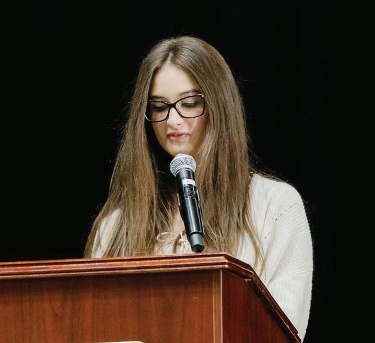 Ava Morgan, a tri-lingual student and member of both the Spanish and Italian honor societies, spoke about the transformative power of multilingualism.