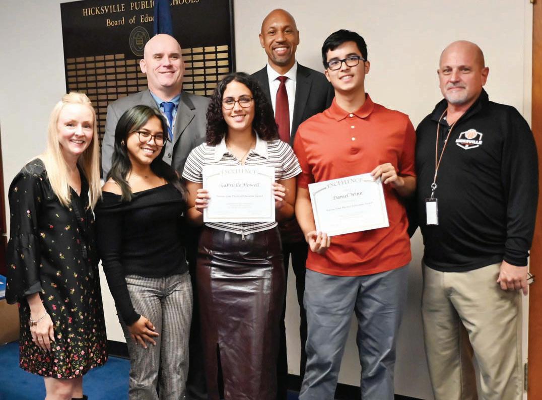 Hicksville Board of Education Secretary Erin Guida, Ex Officio Student Board member Christina D’Costa, students Gabrielle Howell and Daniel Winn, Hicksville Athletic Director Matt Calarco.