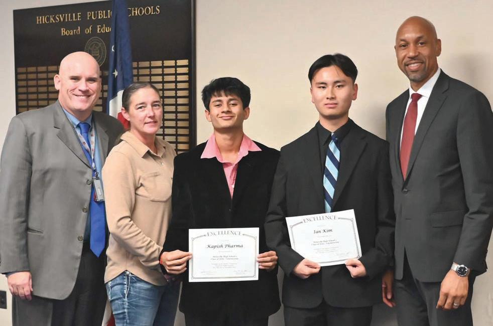 At the Nov. 19 Hicksville Board of Education meeting, Superintendent of Schools Dr. Ted Fulton recognized the following students for their outstanding accomplishments to the Hicksville school community.