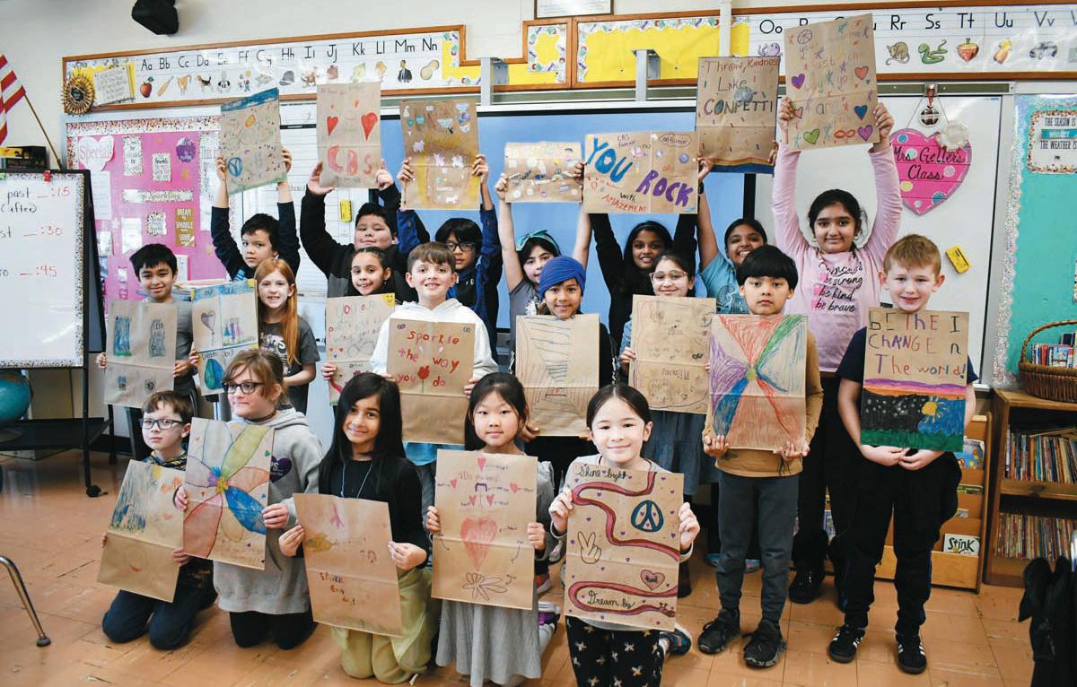 To help spread positivity and kindness throughout the Bethpage community, Central Boulevard Elementary School students recently created their own paper snowflakes with positive messages as part of a schoolwide Thoughtful Thursday activity. The students wrote positive words, phrases and wishes for the New Year and delivered their winter creations to local businesses.