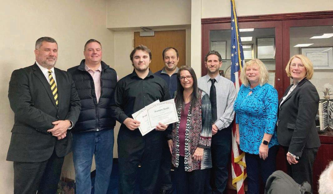 At the Dec. 14 Hicksville Board of Education meeting, Hicksville High School senior Brandon Baade was recognized for attending the NYSSMA AllState Festival held in Rochester, New York on Dec. 1–4 and for being recognized as a Long Island Scholar-Artist through The Long Island Arts Alliance. This is the second year Baade was selected to play the euphonium as part of the All-State Symphonic Band. Participation at the All-State Festival is based on the results of student participation in the NYSSMA Solo Festival from the previous spring. Baade’s AllState euphonium score was a perfect 100, earning him a spot in the All-State Symphonic Band. These ensembles are