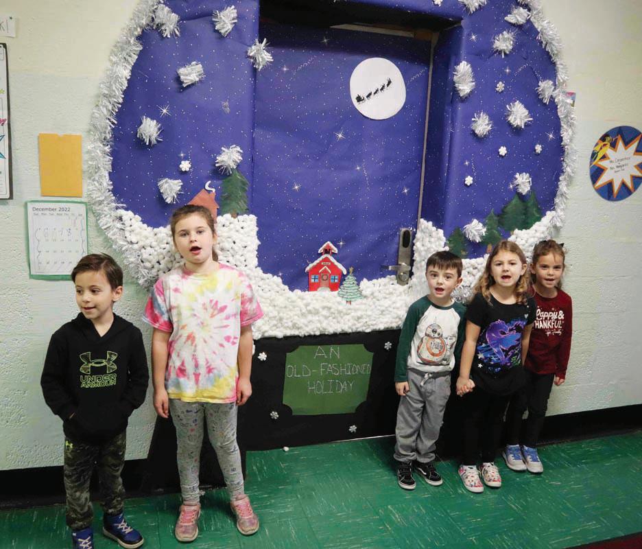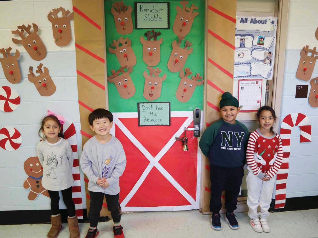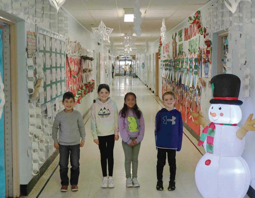 crafts to reflect the season, including one mimicking a large snow globe and another featuring Santa Claus exercising on the gymnasium entrance. At Abbey Lane Elementary School, no corner of the hallways was left untouched as decorations were prepared for a