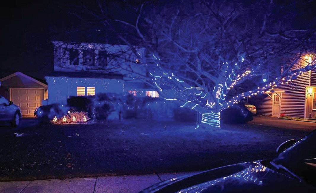 beauty of the Festival of Lights, as it is called. Ronni credits Shlomo with the bulk of the work. Their home was recently featured in Newsday’s Holiday Lights edition.
