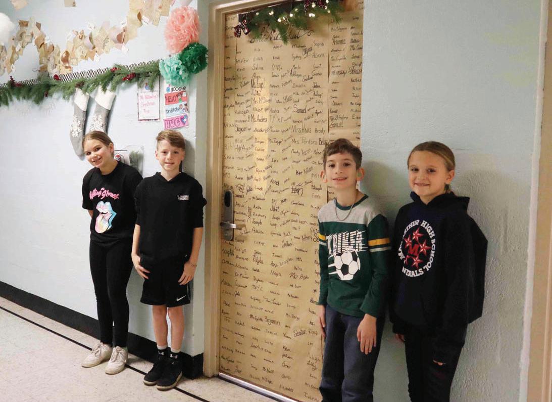 Abbey Lane Elementary School students signed their names on their classroom’s “nice list.”