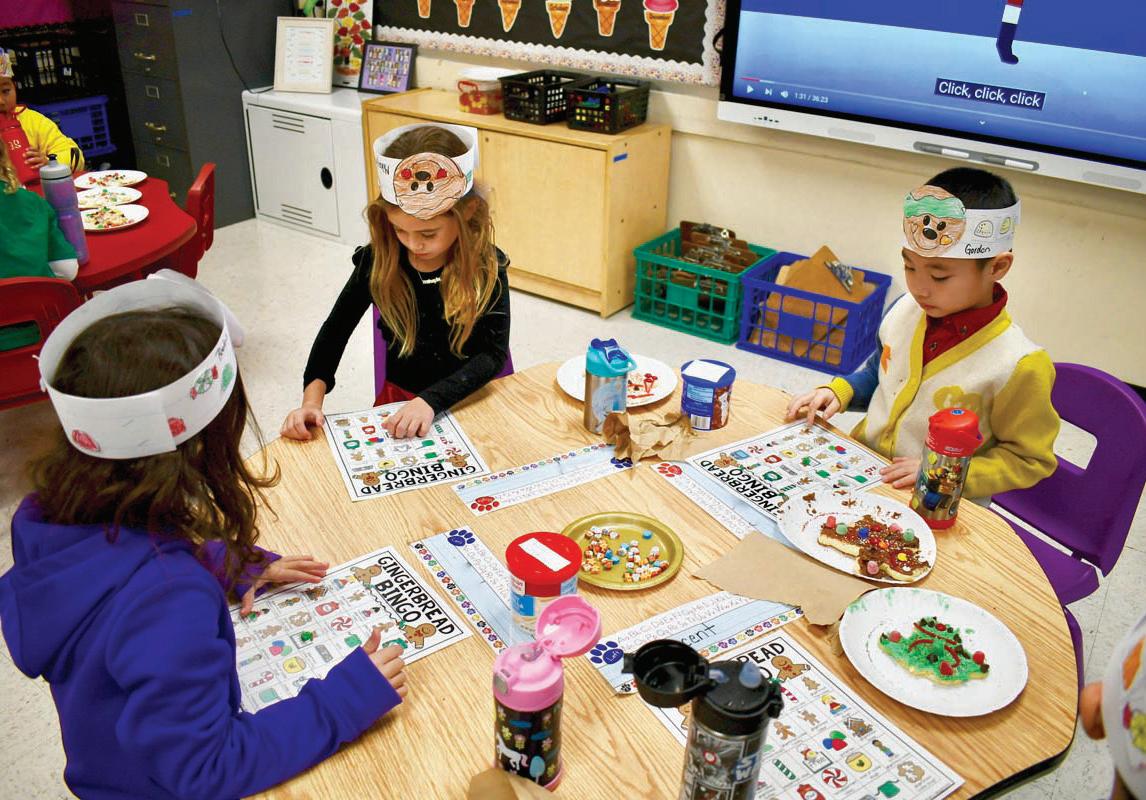 Kindergarten and first grade students from Bethpage’s Kramer Lane Elementary School celebrated the winter season on Dec. 16 with fun gingerbread activities. Kindergartners participated in a gingerbread man scavenger hunt, created gingerbread hats, decorated gingerbread man cookies and played a gingerbread-themed bingo game.