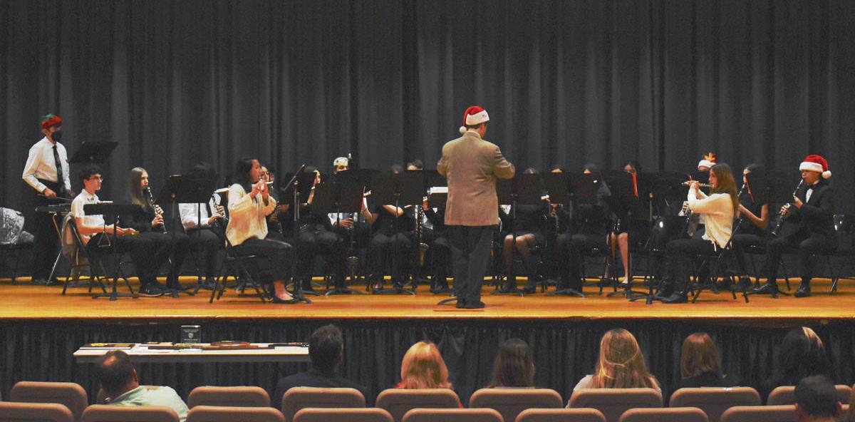 In the auditorium, the MacArthur Wind Ensemble performed a trio of holiday tunes under the direction of band