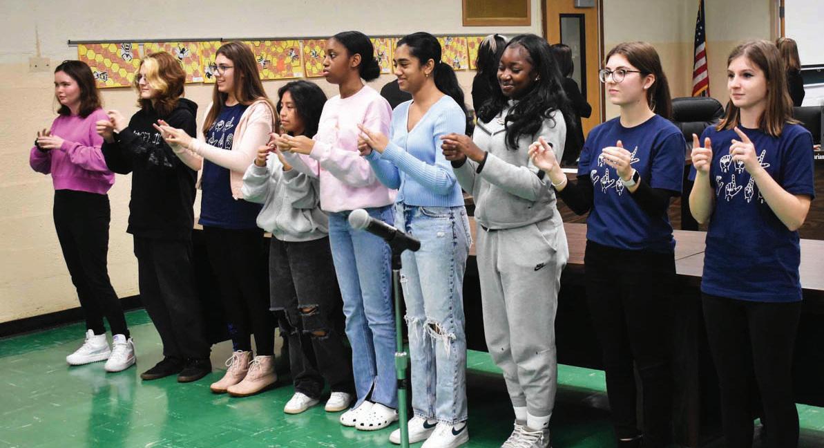 Levittown celebrated academics, athletics and the arts at the board of education meeting on Dec. 7. Opening traditionally with the Pledge of Allegiance, trustees, administrators and audience members were joined by students from the MacArthur High School Sign Language Club, who showcased their knowledge of American Sign Language.