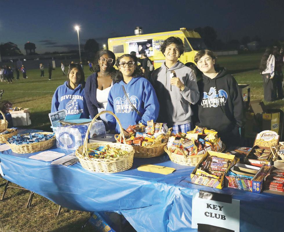 Candy was tossed to onlookers as the parade filled with students from various clubs and sports teams made its way toward the Division Avenue field. Dressed in their best, the homecoming court was cheered on, which included queen Isabella Montes and king Daniel Smith. Before kickoff, clubs including the Key Club sold snacks and merchandise to support their causes. In a mas-