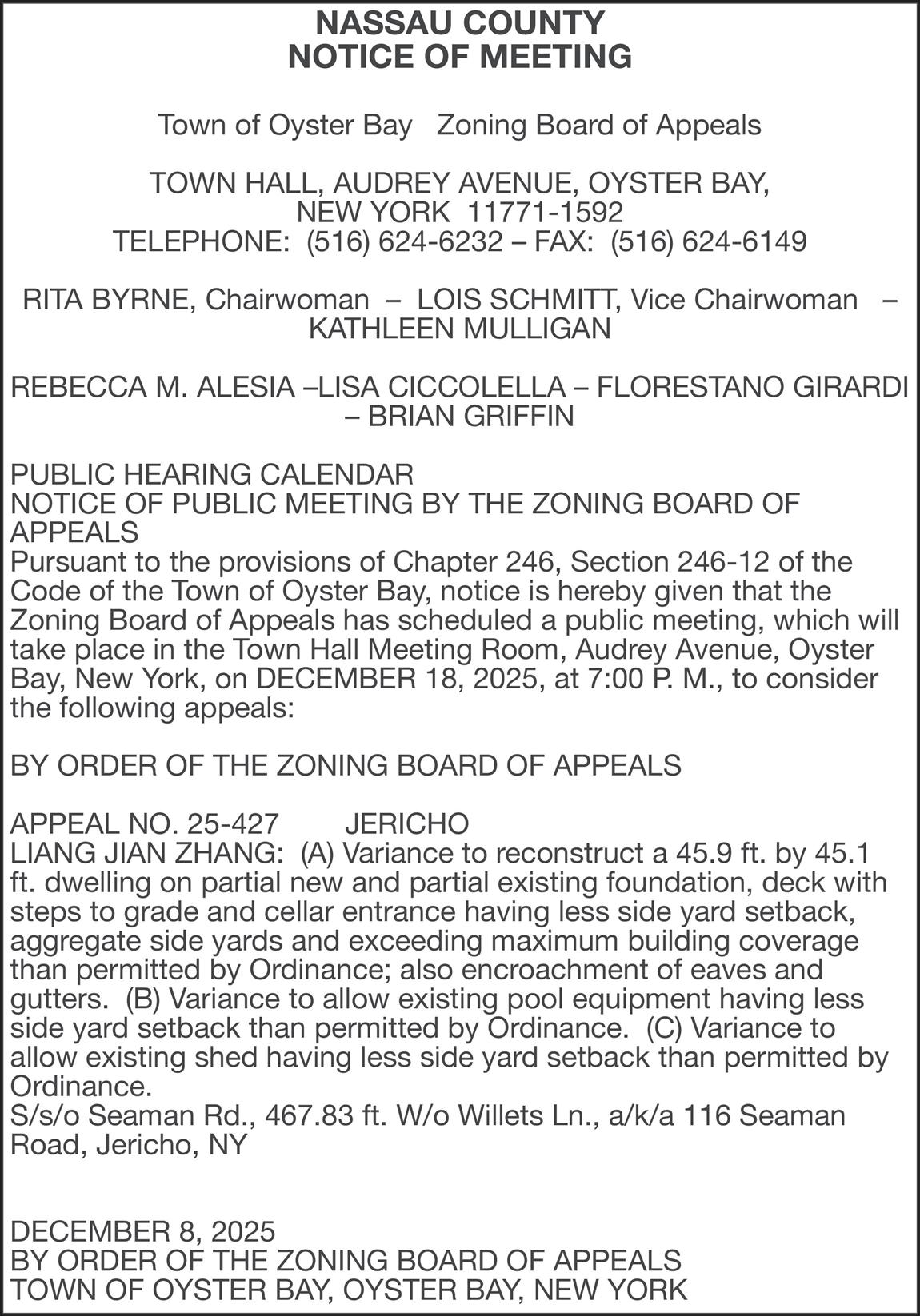 NASSAU COUNTY NOTICE OF MEETING
