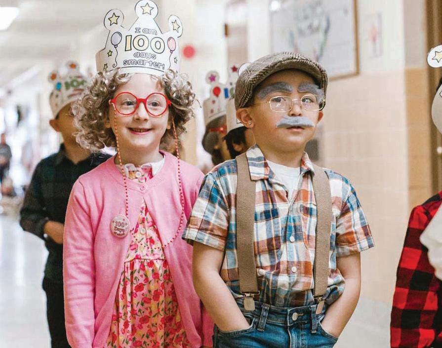At Central Boulevard, the district's youngest learners began the day dressed as centenarians, complete with gray wigs, glasses and walking canes. The pint-sized "senior citizens" paraded through the school hallways to cheers