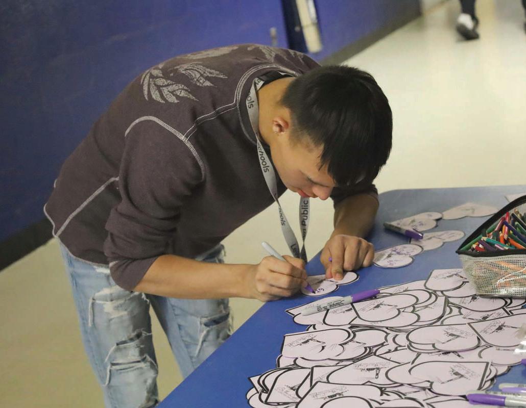 resented in a mural displayed by the front lobby reflecting the theme, “Be The Light.” Outside the cafeteria, students sold purple bracelets, stress-relief toys and sunglasses, as well as raffle tickets for the chance to win one of several prize baskets. At Division Avenue High School, hearts were decorated with messages dedicated to peers who received an uplifting message. Every student’s name was represented in paper chains hung throughout the building, mirroring their unity.