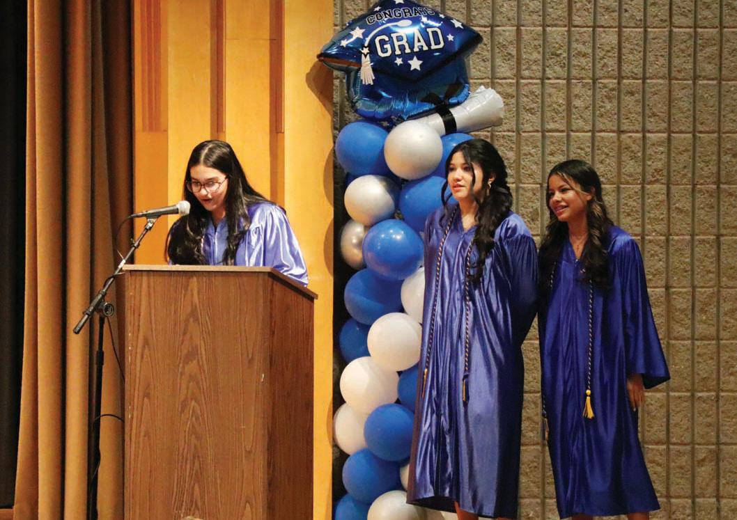 Adrianna Faith, Japleen Rathor and Vanessa Villatoro led the eighth grade class address, reflecting on their peers’ achievements in middle school and urg-