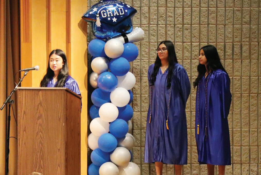 Japleen Rathor, Vanessa Villatoro and Adrianna Faith gave the eighth grade class address.