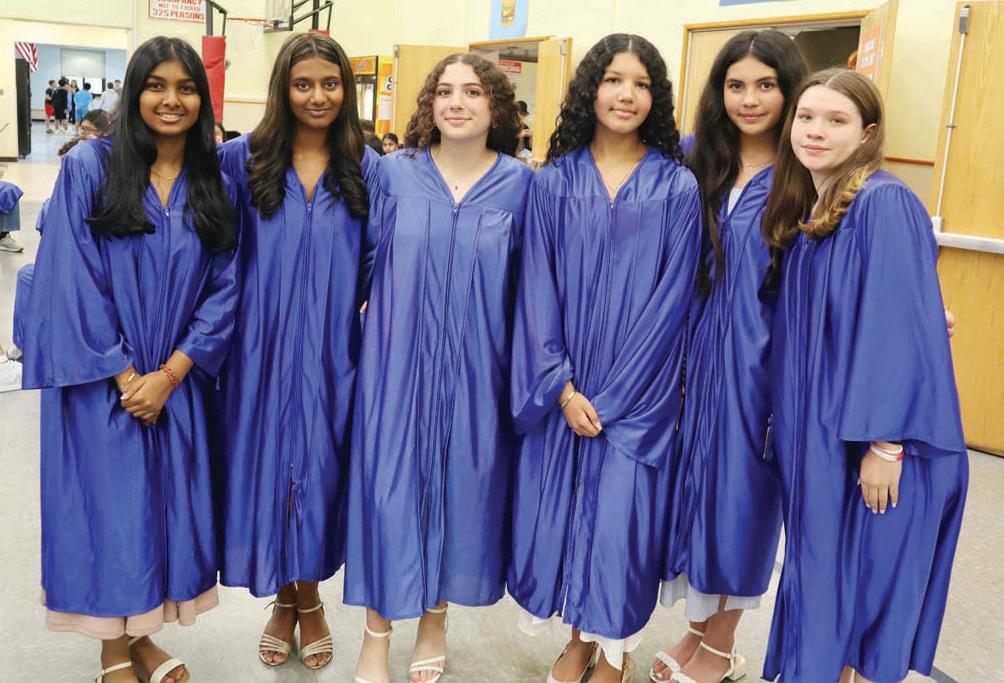 Eighth graders processed toward the auditorium dressed in their gowns to the applause of their peers and school staff. On stage, students Gabrielle Dermody and Olivia Martin led the Pledge of Allegiance before members of the chorus sang “The Star-Spangled Banner.” Principal John Avena led opening remarks, followed by Superintendent Todd Winch and Division Avenue Principal John Coscia, who welcomed the class with excitement.