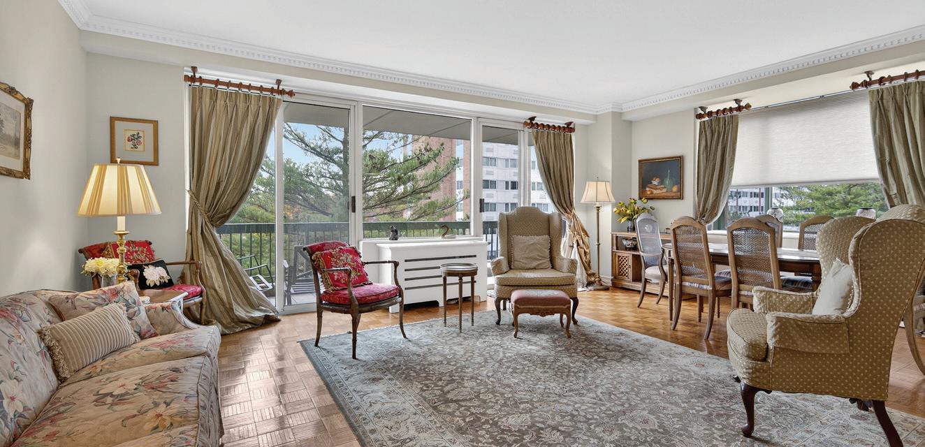 This bright, sunny corner unit has both southern and western exposure. One of the largest 2-bedroom floor plans, it features a spacious eat-in kitchen with updated cabinets, appliances and counters and a large living/dining area with 2 sets of sliding doors opening to a private terrace. Primary suite includes 2 double closets plus a large walk-in closet and an en suite white Carrera bath. Second bedroom also has its own full bath. MLS# 933005. $1,275,000.