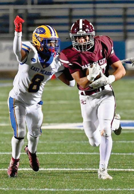The Garden City High School Boys Varsity Soccer Team repeated as state champions with a thrilling victory over the Cornwall Central Dragons. Above, team captains Charlie Koester, Jack Costa, Dylan Fisher, Thomas Fargione, Jack Klein and Jacob Cooper hold the state championship plaque. See pages 50-51.