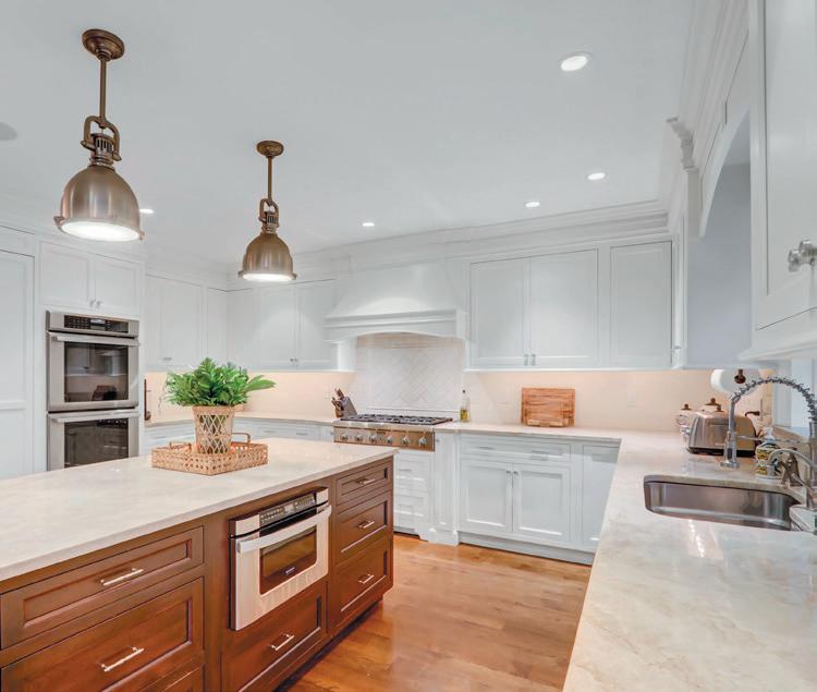 The entry foyer leads to a lovely living room with oversized east facing windows and a cozy wood burning fireplace. The dining room offers ample space for dining and guests and provides access to the enclosed sunroom thru French doors. The kitchen has beautiful wood cabinetry, granite countertops and stainless appliances. A powder room is also located on the first floor.